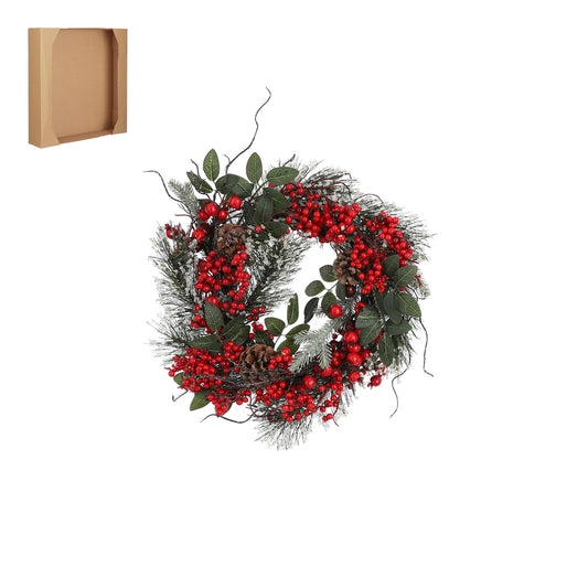 ΣΤΕΦΑΝΙ ΕΛΑΤΟ D60cm ΠΡΑΣΙΝΟ ΠΑΓΩΜΕΝΟ ΜΕ BERRY/ΚΟΥΚΟΥΝΑΡΙ Creston TIPS 142 pvc