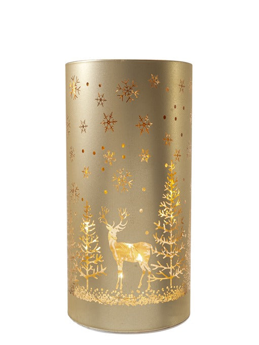 ΓΥΑΛΙΝΗ ΒΑΣΗ ΚΥΛΙΝΔΡΙΚΗ ΧΡΥΣΗ ΜΕ LED 10Χ10Χ20ΕΚ