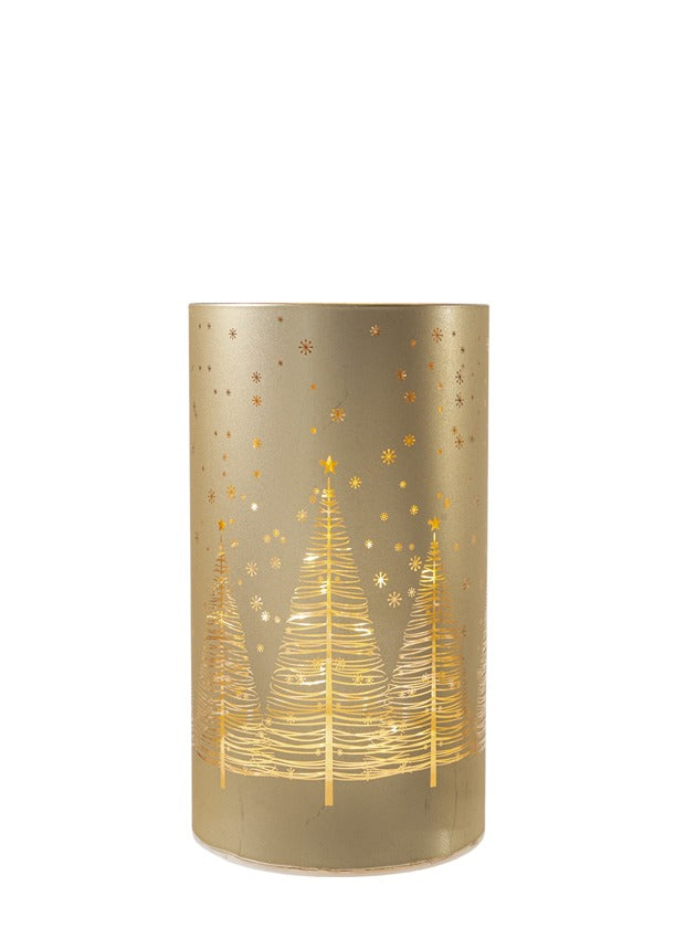 ΓΥΑΛΙΝΗ ΒΑΣΗ ΚΥΛΙΝΔΡΙΚΗ ΧΡΥΣΗ ΜΕ LED 9Χ9Χ16ΕΚ