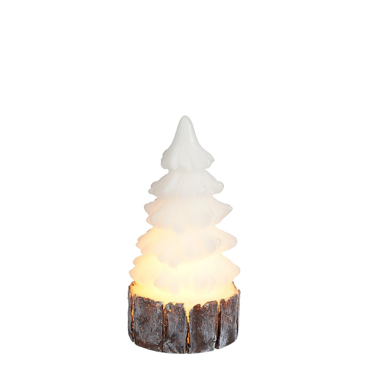 ΔΕΝΤΡΟ ΛΕΥΚΟ ΜΕ LED ΜΕ ΒΑΣΗ ΞΥΛΙΝΗ ΜΠΑΤΑΡΙΑΣ timer h16,5 d8cm