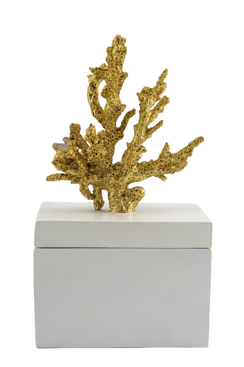 ΔΙΑΚΟΣΜΗΤΙΚΟ ΠΟΛΥΕΣΤΕΡΙΚΟ ΚΟΥΤΙ ΛΕΥΚΟ ΜΕ ΧΡΥΣΟ ΚΟΡΑΛΙ 18,5Χ9,7Χ26,5ΕΚ