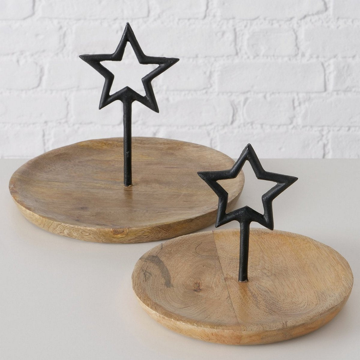 ΔΙΣΚΟΣ ΣΤΡΟΓΓΥΛΟΣ Set/2 ΞΥΛΟ Mango καφε ΜΕ ΧΕΡΟΥΛΙ ΜΕΤΑΛΟ ΜΑΥΡΟ ΣΧΕΔΙΟ ΑΣΤΕΡΙ Etano H15-20cm D20-25cm