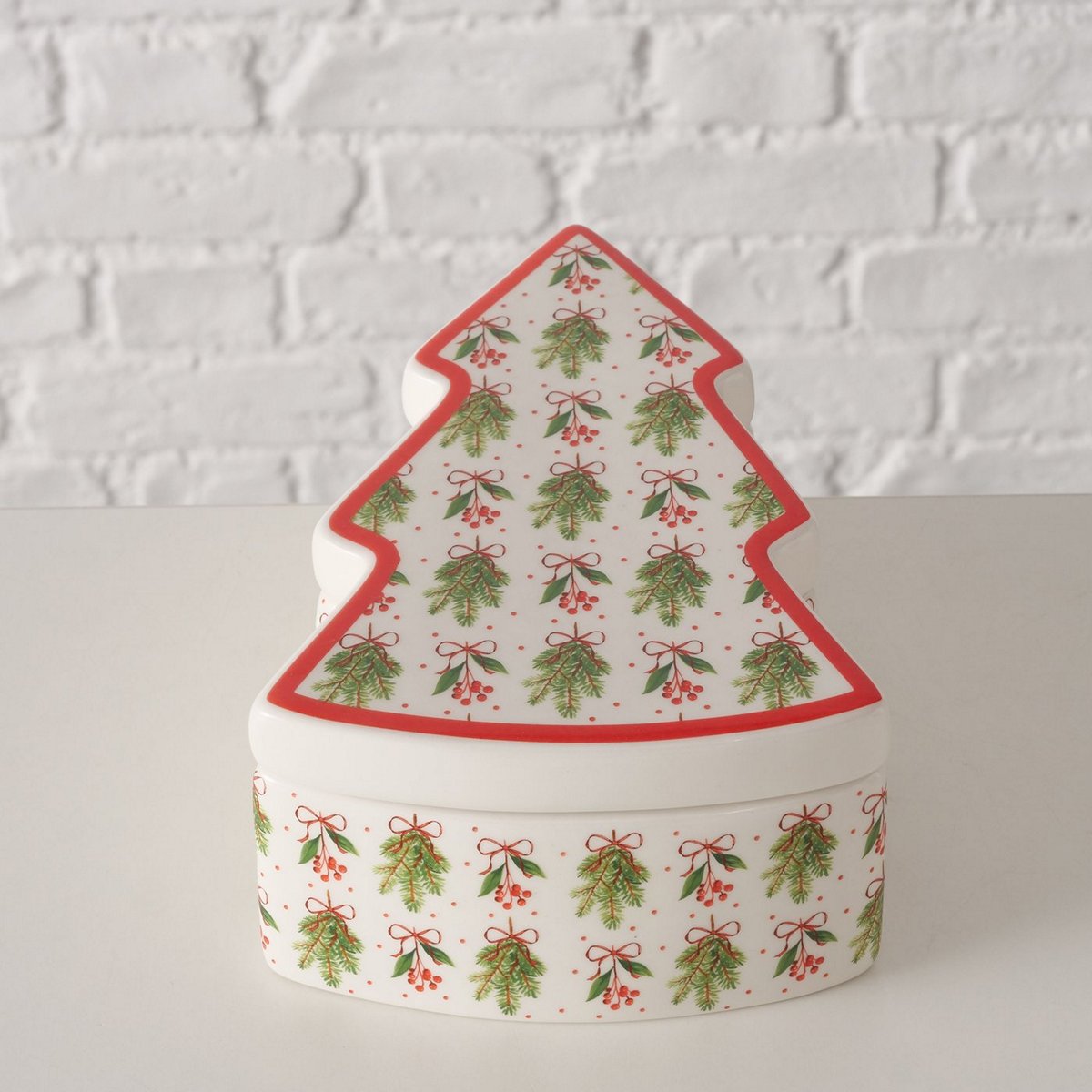ΔΟΧΕΙΟ ΑΠΟΘΗΚΕΥΣΗΣ ΔΕΝΤΡΟ Noelle ΚΟΚΚΙΝΟ ΛΕΥΚΟ ΠΡΑΣΙΝΟ 20X13,5X8cm ΚΕΡΑΜΙΚΟ
