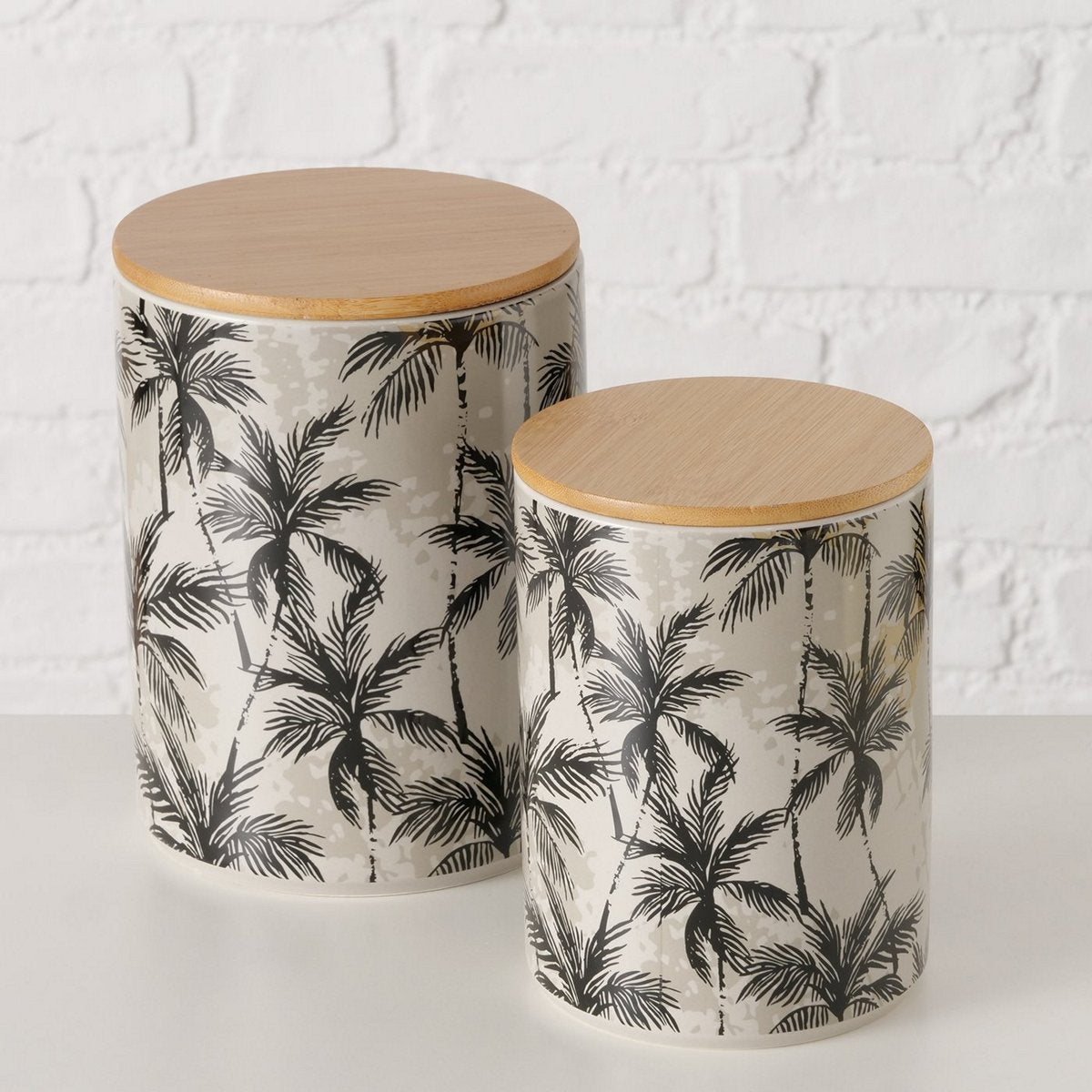 ΔΟΧΕΙΟ Set/2 ΑΠΟΘΗΚΕΥΣΗΣ ΣΧΕΔΙΟ ΦΟΙΝΙΚΑΣ Palma ΠΡΑΣΙΝΟ ΜΑΥΡΟ H16/19cm D12/14cm Bamboo ΚΑΠΑΚΙ
