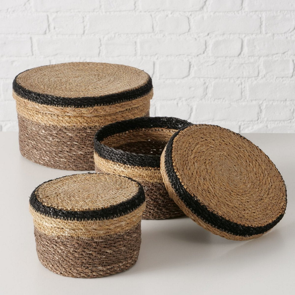 ΚΑΛΑΘΙ ΜΠΑΜΠΟΥ Set/3 ΜΕ ΚΑΠΑΚΙ ΚΑΦΕ ΜΠΕΖ ΜΑΥΡΟ H10 / 12/ 15cm D16 / 20 / 27cm seagrass