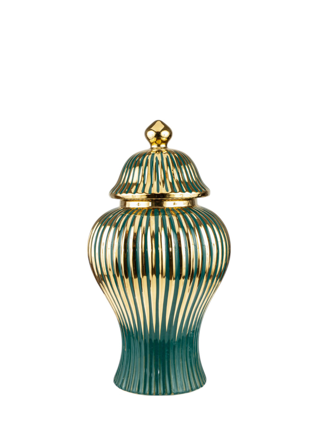 ΚΕΡΑΜΙΚΟ ΒΑΖΟ ΜΕ ΚΑΠΑΚΙ,ΠΡΑΣΙΝΟ ΜΕ ΧΡΥΣΕΣ ΡΗΓΕΣ 15,5Χ29,5ΕΚ