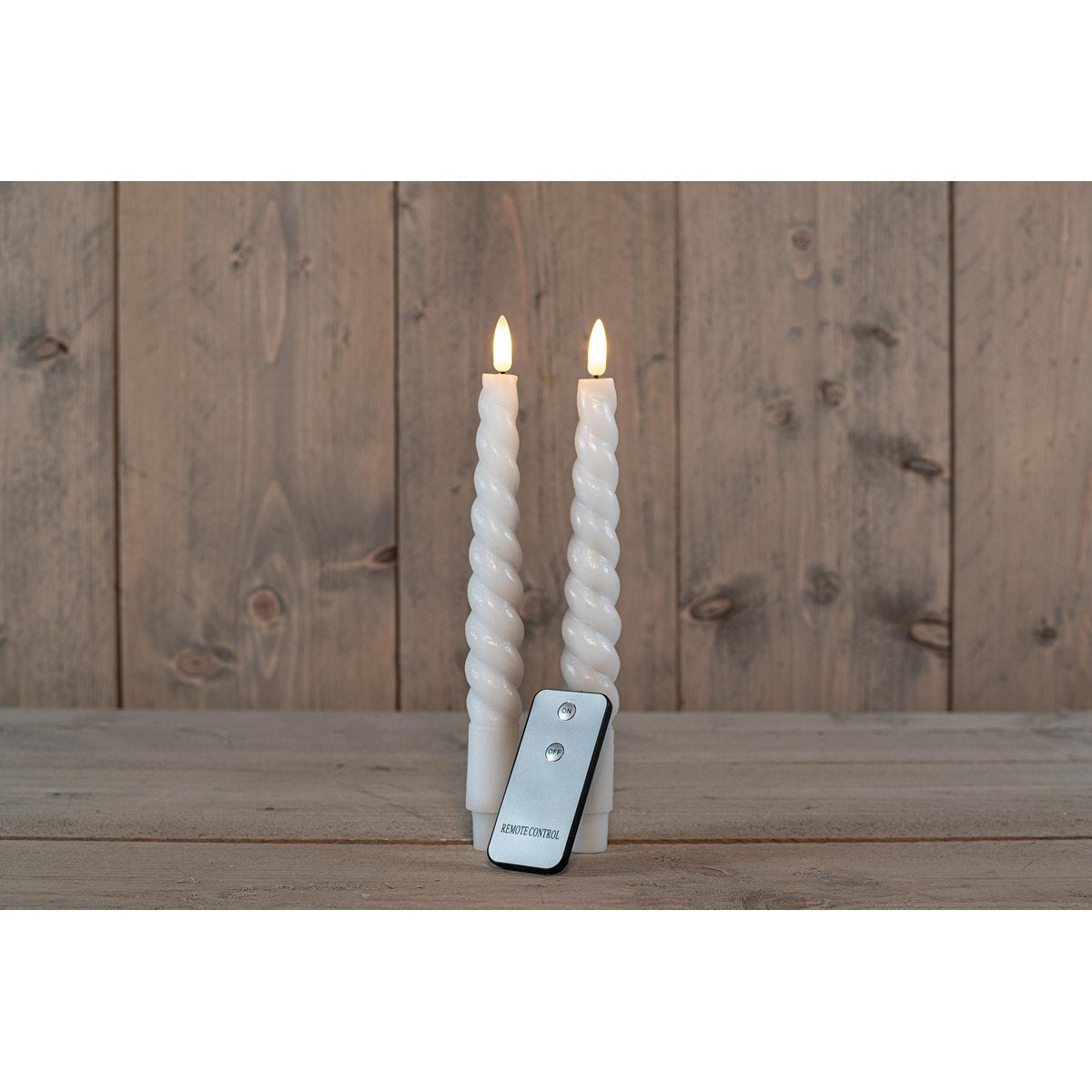 ΚΕΡΙ ΣΠΑΡΜΑΤΣΕΤΟ ΣΤΡΙΦΤΟ ΛΕΥΚΟ RUSTIC 2ΤΜΧ TAPER 23CM ΜΕ ΚΙΝΟΥΜΕΝΗ ΦΛΟΓΑ ΜΠΑΤΑΡΙΑΣ REMOTE CONTROL 2 X AAA - COLOURBOX
