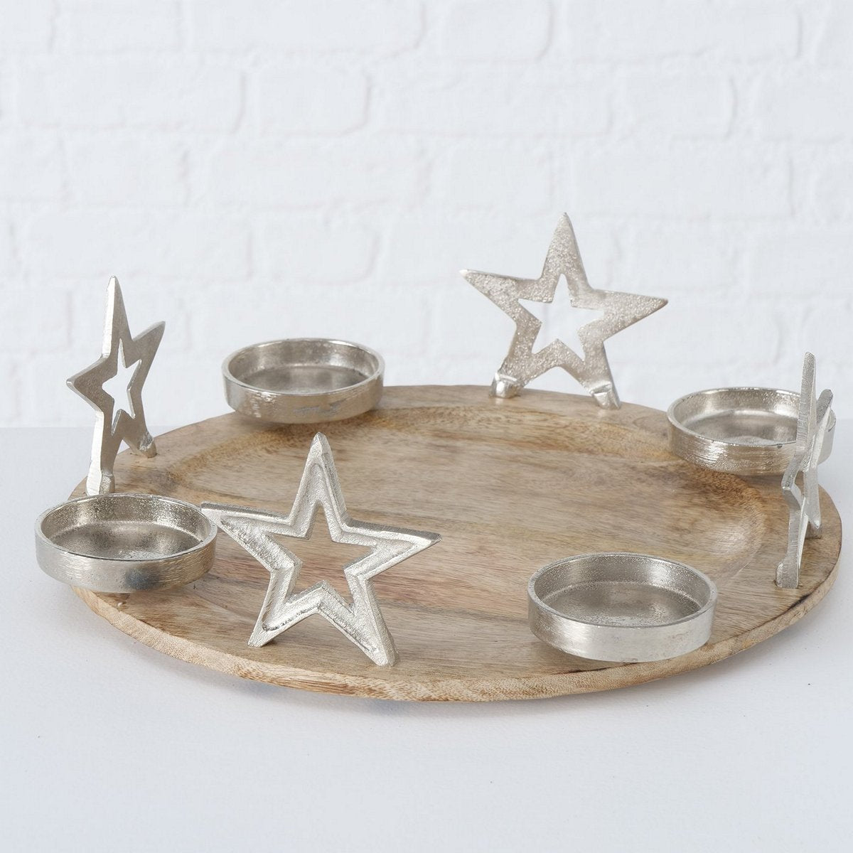 ΚΗΡΟΠΗΓΙΟ ΣΕ ΞΥΛΙΝΗ ΒΑΣΗ ΜΕ ΜΕΤΑΛΙΚΑ ΑΣΗΜΙ ΑΣΤΕΡΙΑ 4 Θέσεων Jannah D40cm H13cm ΞΥΛΟ Mango, ΑΛΟΥΜΙΝΙΟ