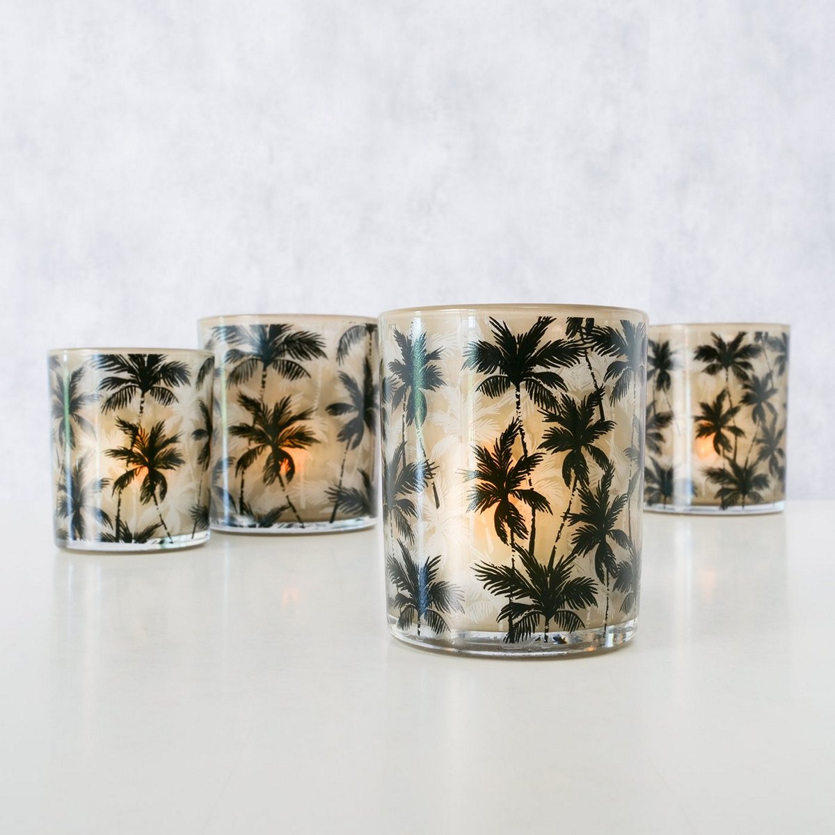 ΚΗΡΟΠΗΓΙΟ 2/ass Set/2 ΣΧΕΔΙΟ ΦΟΙΝΙΚΑΣ Palma H8,4xD7cm H10,3 D9,5cm ΜΠΕΖ ΜΑΥΡΟ ΓΥΑΛΙ