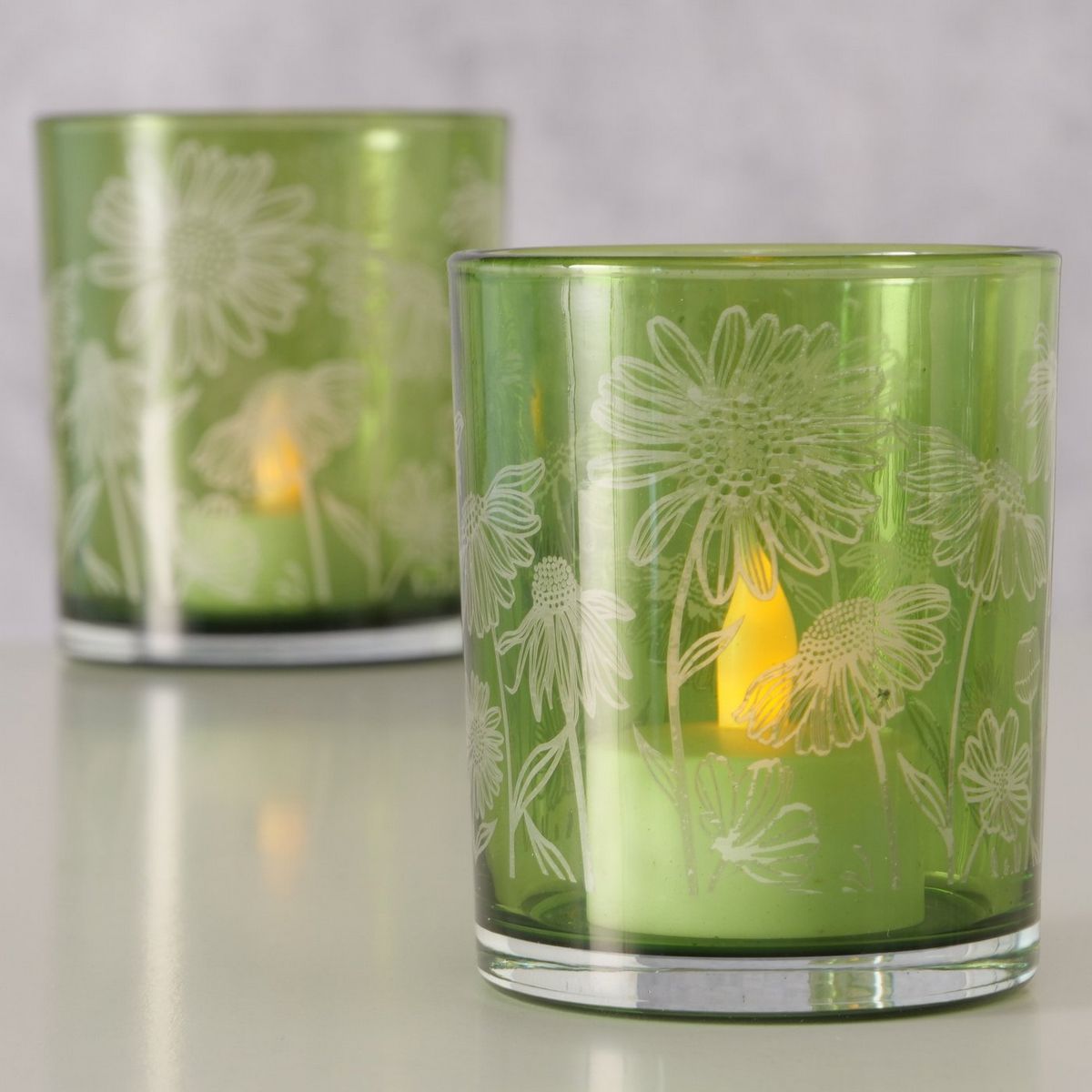ΚΗΡΟΠΗΓΙΟ Set/2 H9/10cm, D7/9cm Gardo, ΠΡΑΣΙΝΟ ΓΥΑΛΙ lacquered,Floral