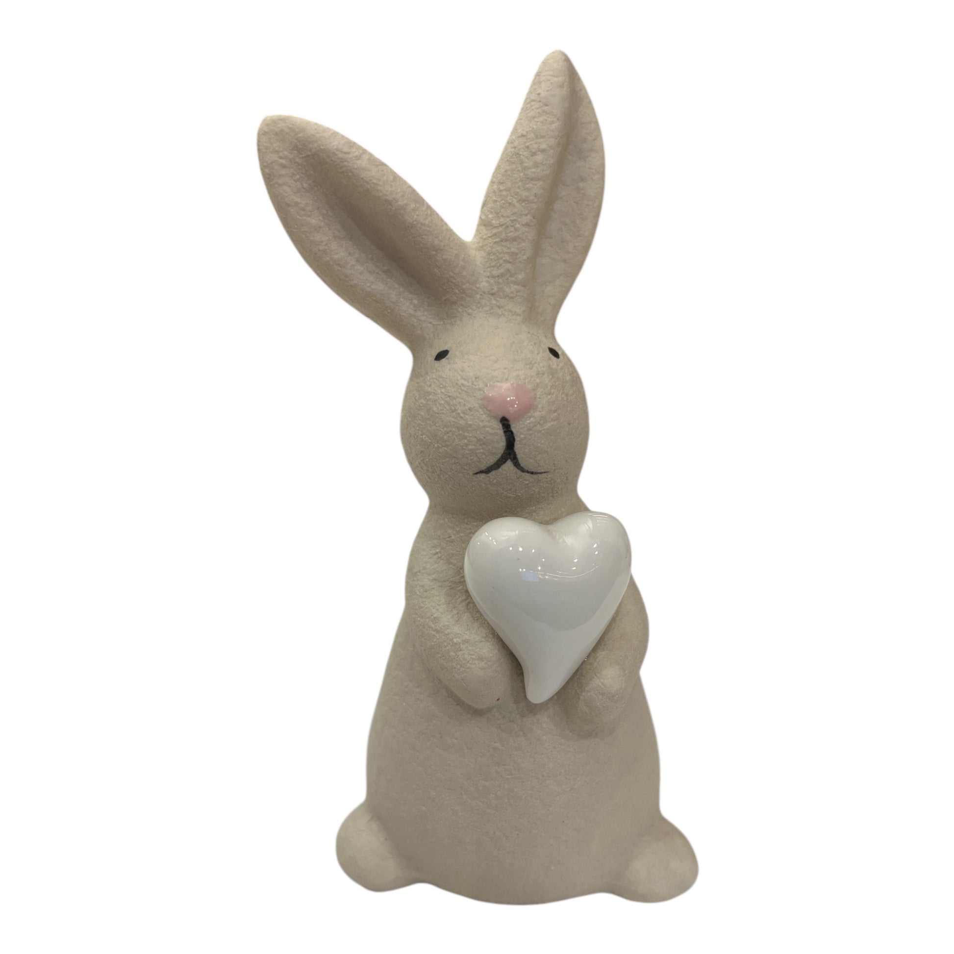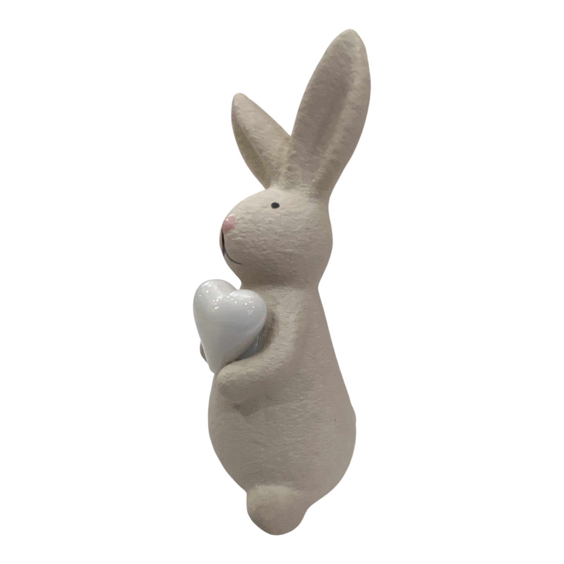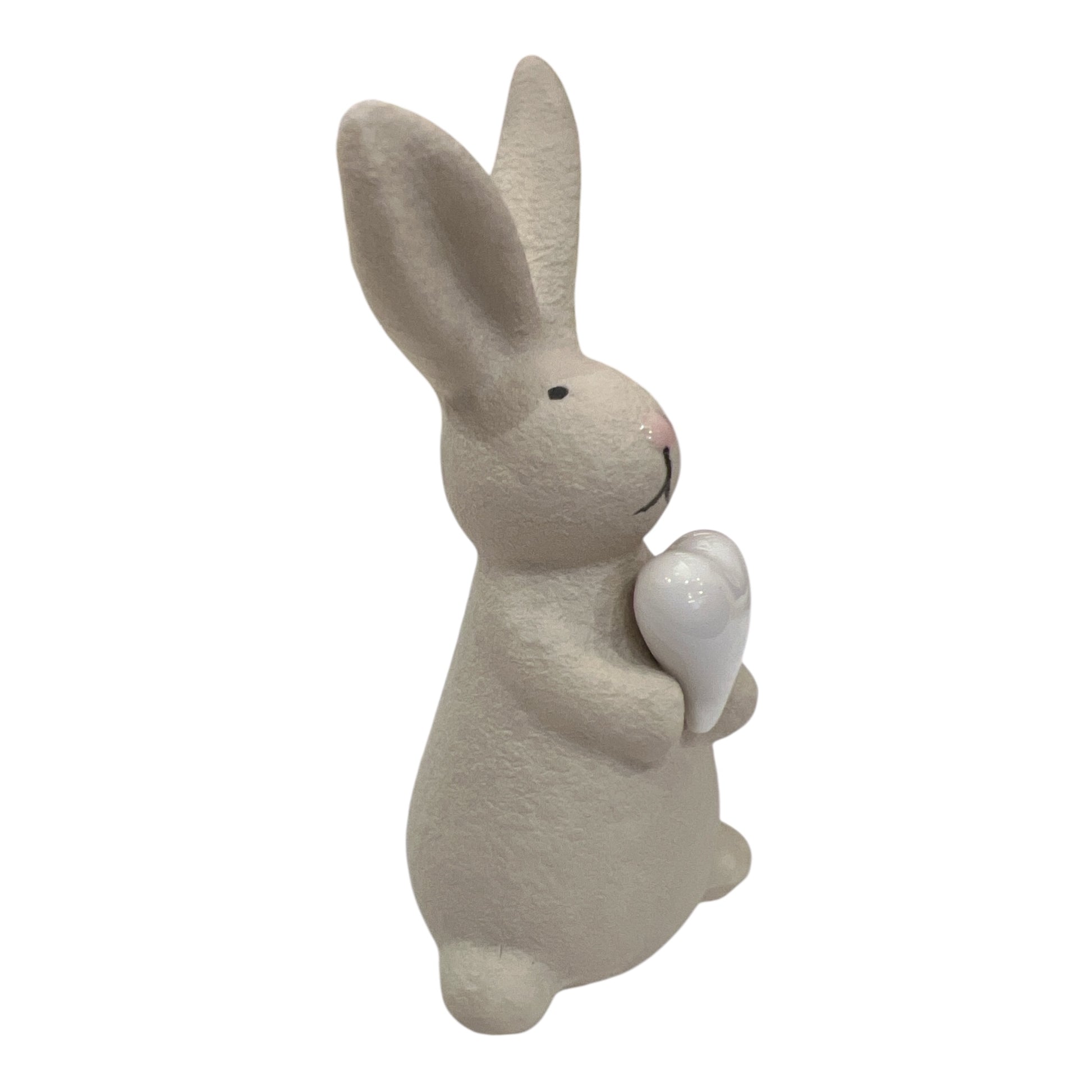 Ανακαλύψτε την γοητεία του κουνελιού πορσελάνης σε μπεζ απόχρωση, ιδανικό για να προσθέσει μία νότα κομψότητας και ζεστασιάς στον χώρο σας. Με ύψος 12.5cm, αυτό το πανέμορφο διακοσμητικό κομμάτι κρατάει μία λευκή καρδιά, προσφέροντας μία παιχνιδιάρικη και χαρούμενη αίσθηση.