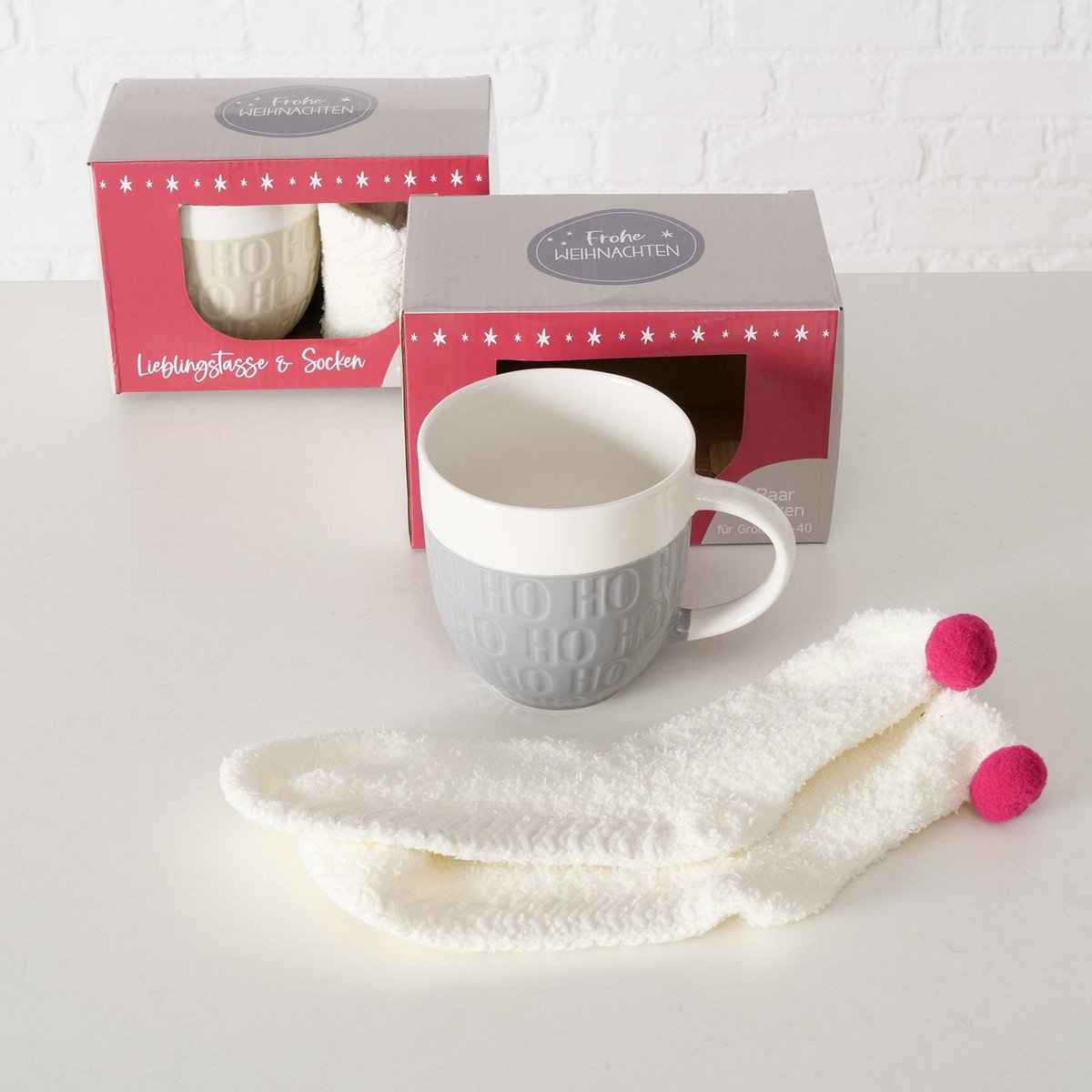 ΚΟΥΠΑ ΜΠΕΖ/ΓΚΡΙ 2/ass ΣΕ ΣΥΣΚΕΥΑΣΙΑ ΜΕ ΔΩΡΟ ΚΑΛΤΣΕΣ ΛΕΥΚΕΣ 600ml Dishwasher safe Hoho ΚΕΡΑΜΙΚΟ