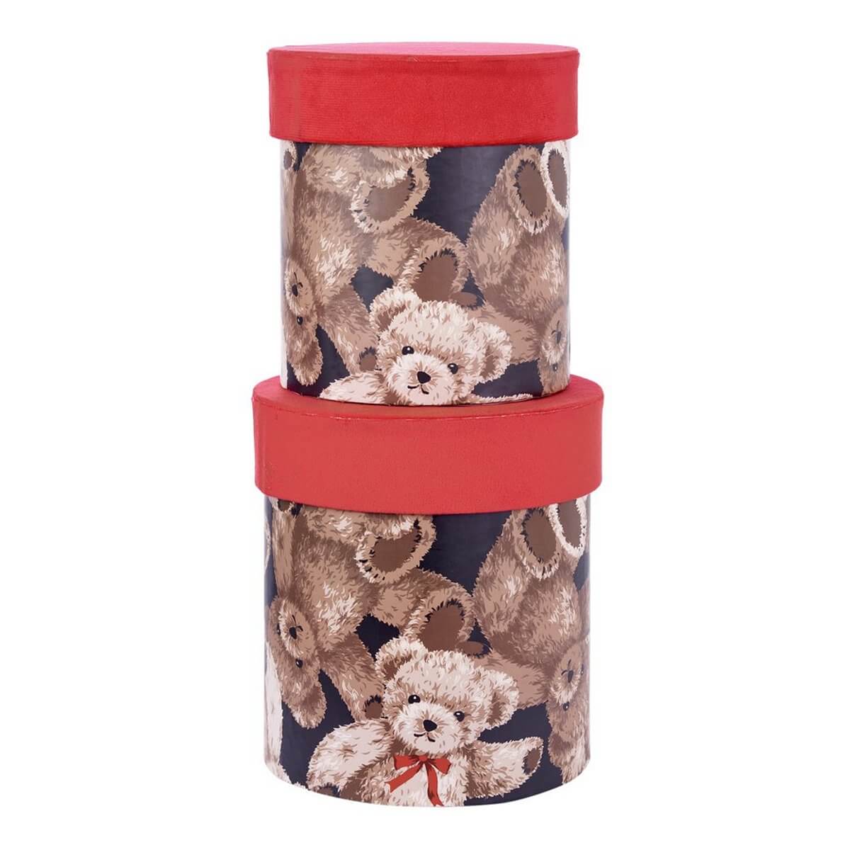 ΚΟΥΤΙ Set/2 ΚΥΛΙΝΔΡΙΚΟ ΚΟΚΚΙΝΟ BEΛΟΥΔΟ ΜΕ ΚΑΦΕ ΑΡΚΟΥΔΑΚΙΑ D16-Η19cm, D18,5-H21cm