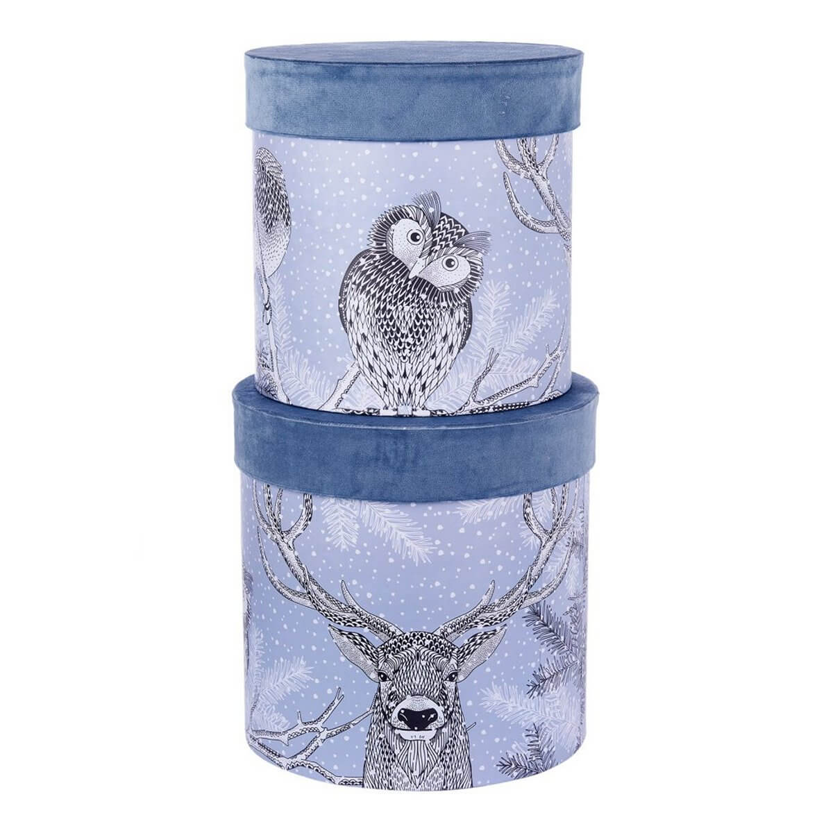 ΚΟΥΤΙ Set/2 ΚΥΛΙΝΔΡΙΚΟ ΜΠΛΕ ΒΕΛΟΥΔΟ ΜΕ ΚΟΥΚΟΥΒΑΓΙΑ /ΤΑΡΑΝΔΟΣ D23-H25cm D25-H26cm