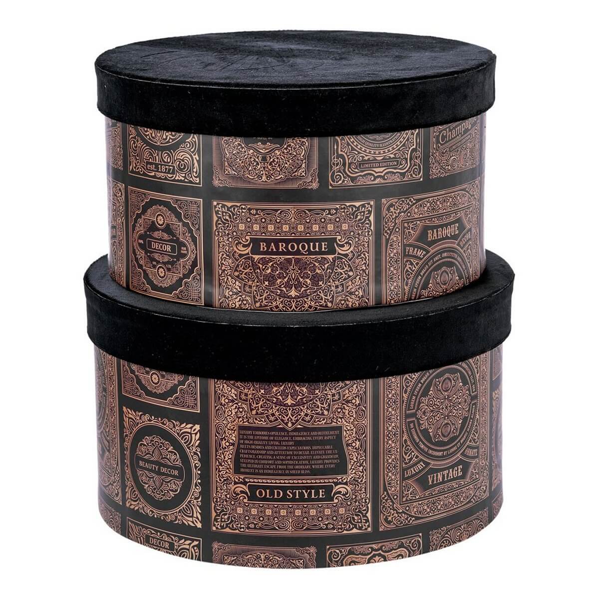 ΚΟΥΤΙ Set/2 ΣΤΡΟΓΓΥΛΟ ΜΑΥΡΟ ΒΕΛΟΥΔΟ ΚΑΦΕ ΣΧΗΜΑΤΑ D25-Η14,5cm, D27,5-H16cm