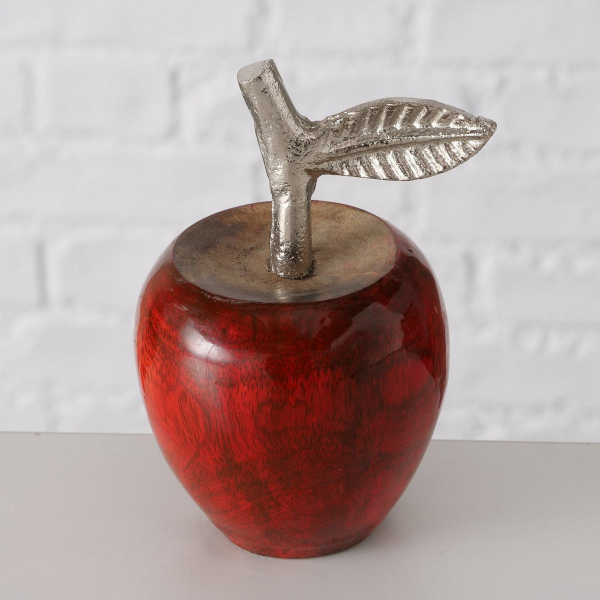 ΜΗΛΟ ΞΥΛΙΝΟ ΔΙΑΚΟΣΜ ΚΟΚΚΙΝΟ ΜΕΤΑΛΛΙΚΟ ΦΥΛΛΟ ΑΣΗΜΙ Rapple 7x7x11cm Mango Alu