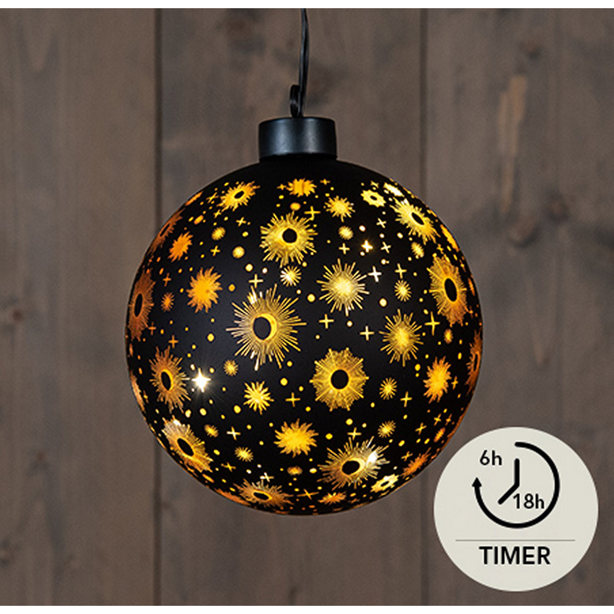 ΜΠΑΛΑ ΓΥΑΛΙΝΗ 10LED ΜΑΥΡΗ ΜΕ ΧΡΥΣΑ ΑΣΤΕΡΙΑ ΕΣΩΤΕΡΙΚΑ 12CM ΘΕΡΜΟ ΛΕΥΚΟ 2XAAA ON/OFF/TIMER 6H ΜΠΑΤΑΡΙΑΣ