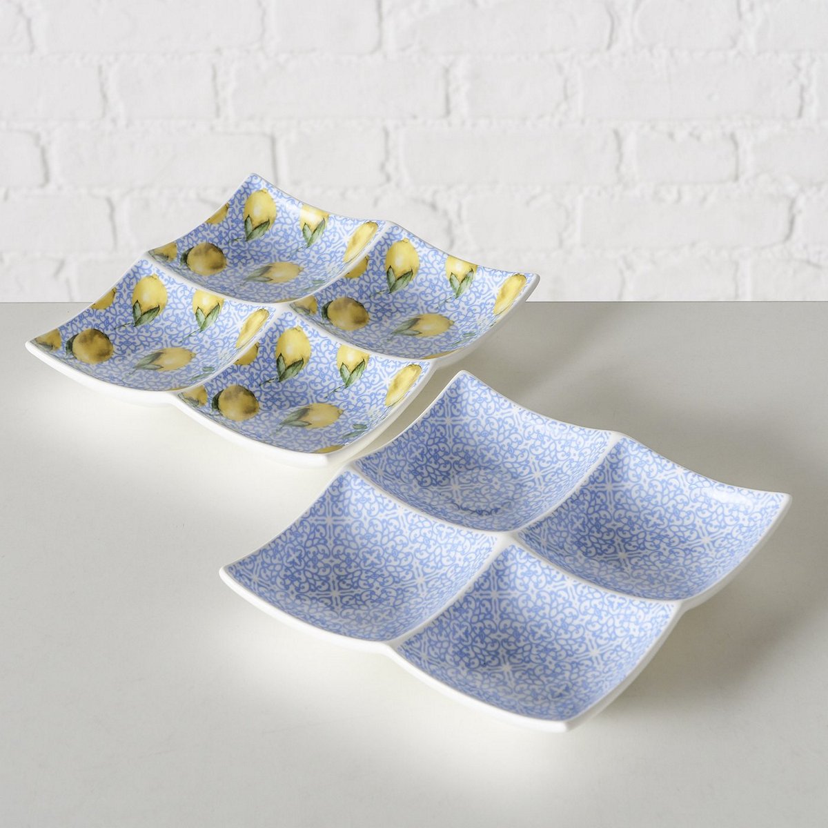 ΟΡΝΤΕΡΒΙΕΡΑ ΜΕ 4 ΘΕΣΕΙΣ 2/ass ΣΧΕΔΙΟ Capri ΛΕΜΟΝΙΑ 2/ass ΜΠΛΕ ΛΕΥΚΟ ΚΙΤΡΙΝΟ Dishwasher proof 17X17X3cm New Bone ΠΟΡΣΕΛΑΝΗ