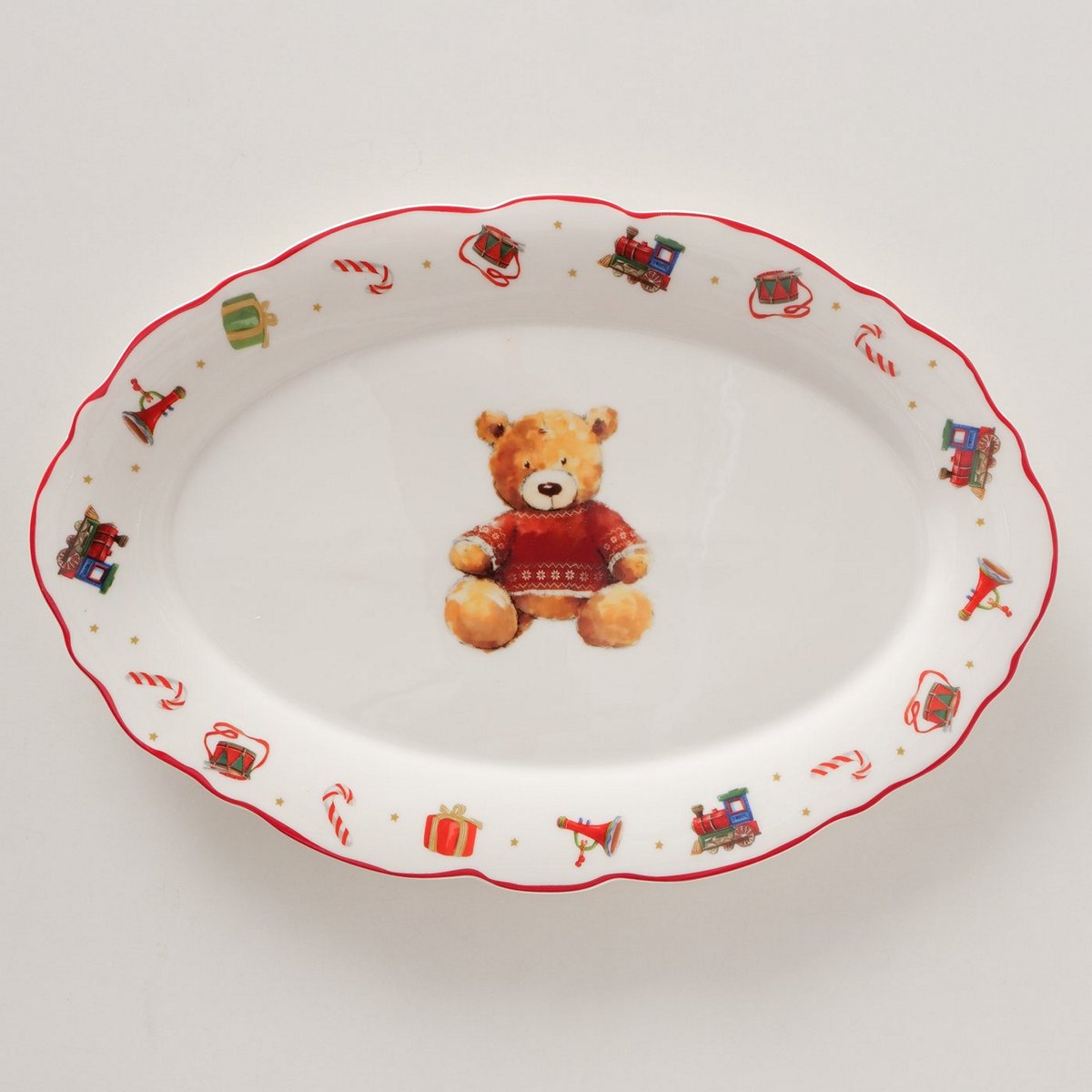 ΠΙΑΤΕΛΑ ΟΒΑΛ ΑΡΚΟΥΔΑΚΙΑ Bailey ΚΑΦΕ ΚΟΚΚΙΝΟ ΛΕΥΚΟ 31X21,2X2cm New Bone ΠΟΡΣΕΛΑΝΗ