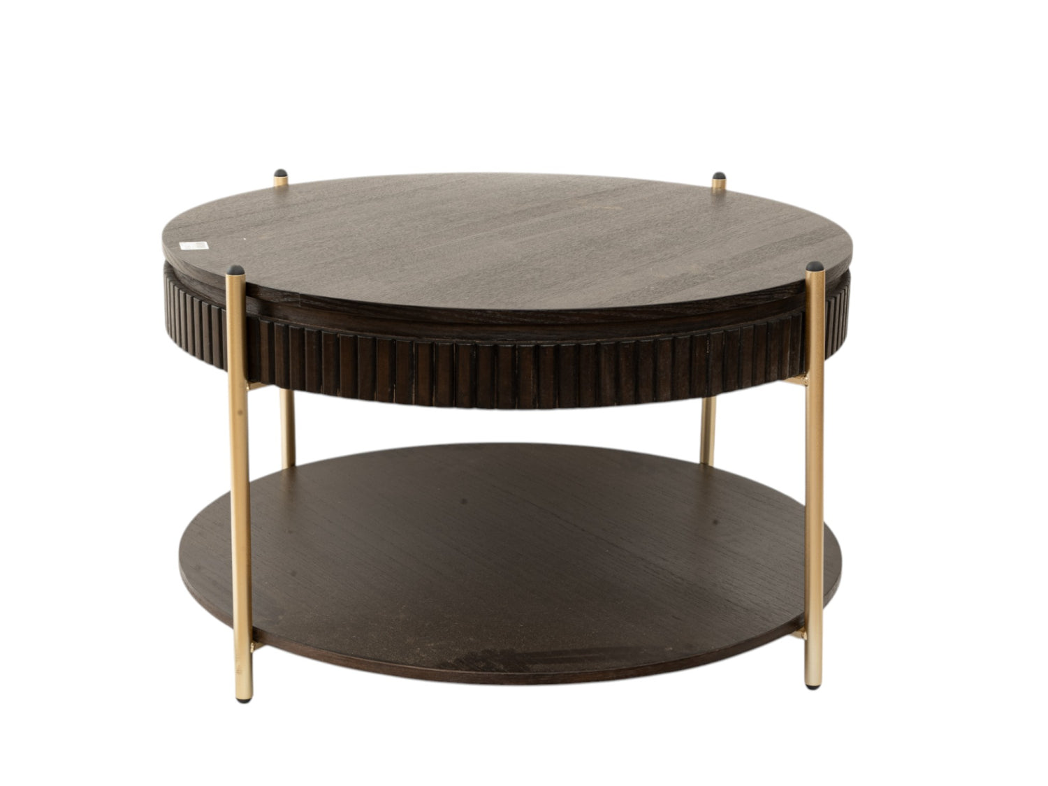 ΤΡΑΠΕΖΙ ΣΑΛΟΝΙΟΥ ΣΤΡΟΓΓΥΛΟ ΚΑΦΕ ΜΕ ΜΕΤΑΛΛΙΚΑ ΧΡΥΣΑ ΠΟΔΙΑ ΚΑΙ ΡΑΦΙ 80Χ80Χ40ΕΚ