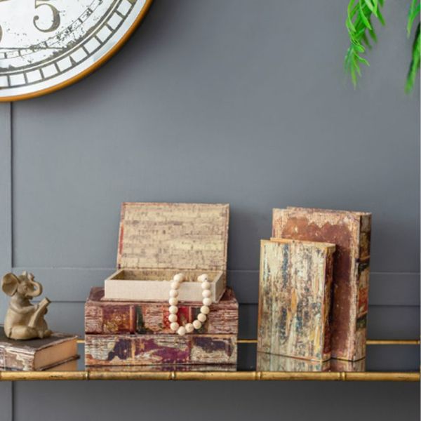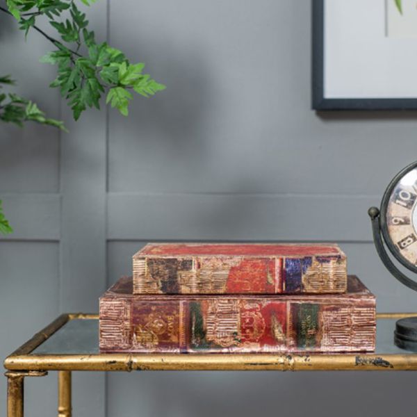 BOOK Διακοσμητικό Βιβλίο Κουτί MDF Ύφασμα Πολύχρωμο (33x22x7)cm Σετ/6